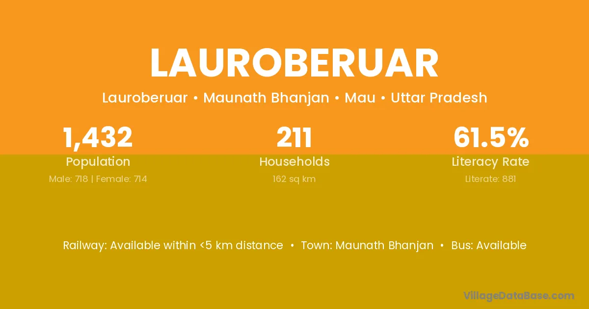 Maunath Bhanjan is the nearest town to Lauroberuar village for major economic activities