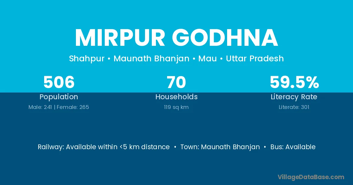 Maunath Bhanjan is the nearest town to Mirpur Godhna village for major economic activities