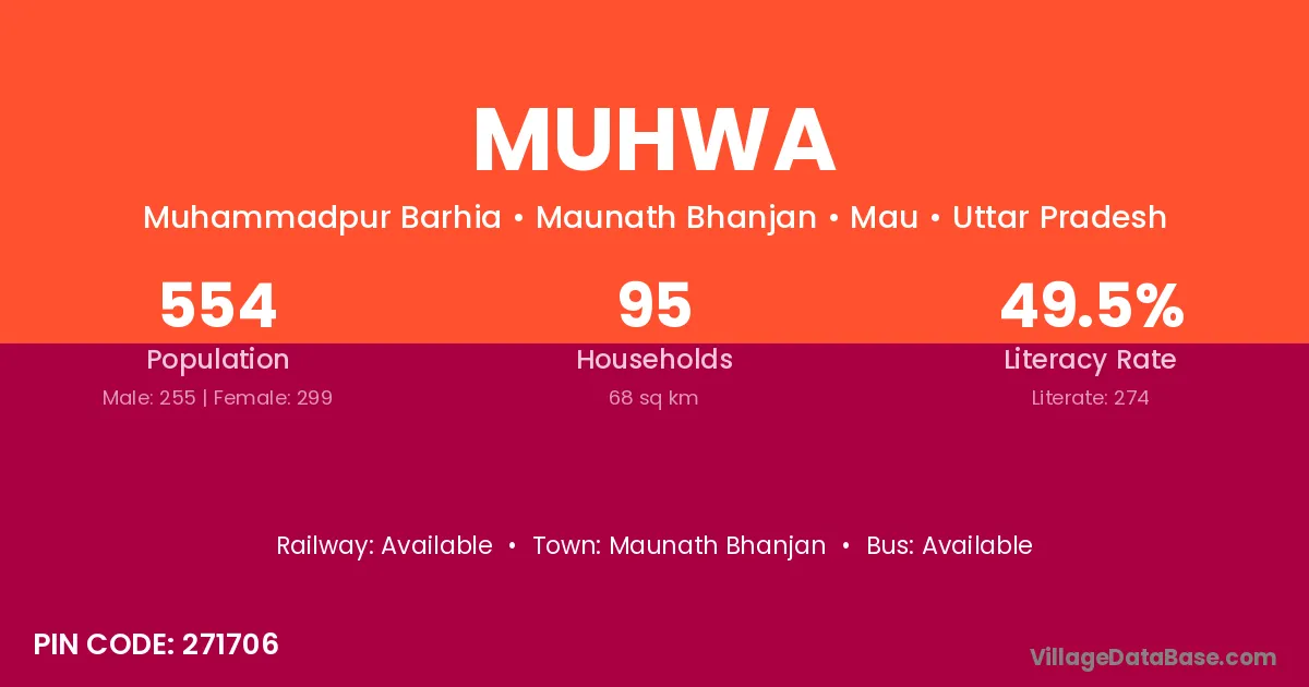 Maunath Bhanjan is the nearest town to Muhwa village for major economic activities