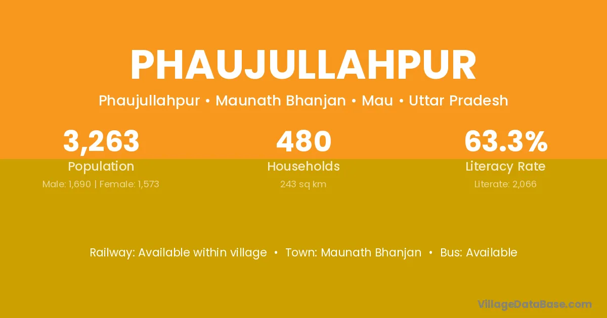 Phaujullahpur village has a total population of 3,263 people, of which 1,690 are males and 1,573 are females.