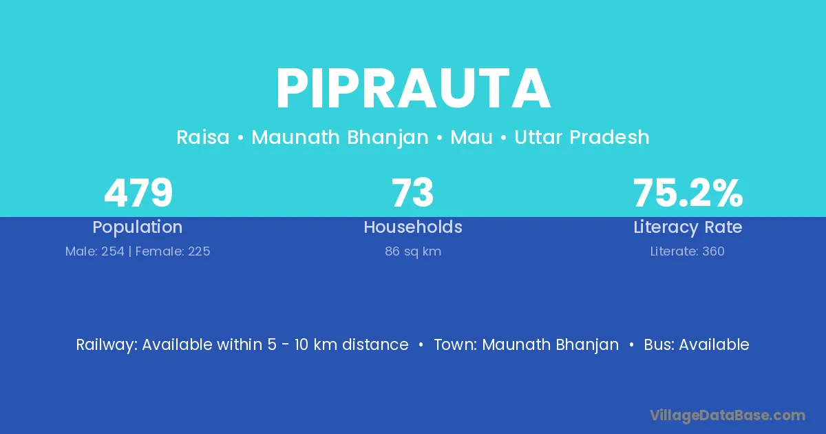 Maunath Bhanjan is the nearest town to Piprauta village for major economic activities