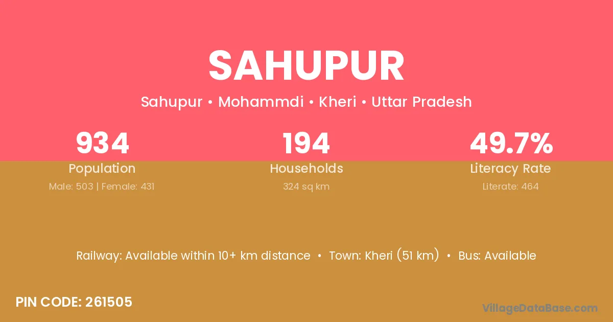 Sahupur village has a total population of 2,350 people, of which 1,218 are males and 1,132 are females.