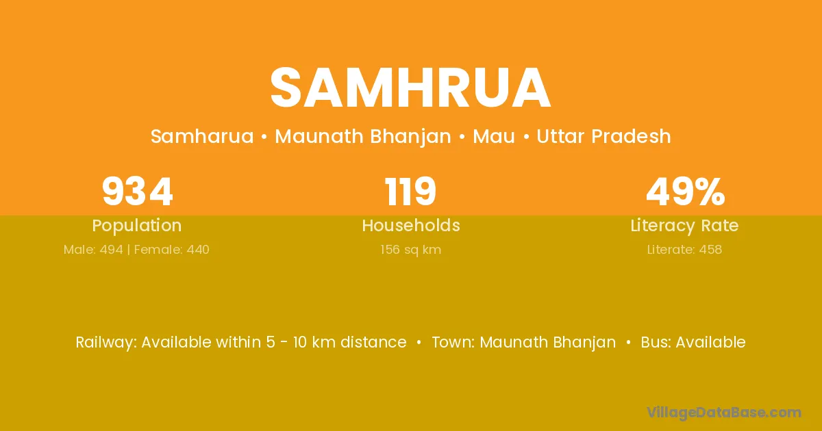 Maunath Bhanjan is the nearest town to Samhrua village for major economic activities