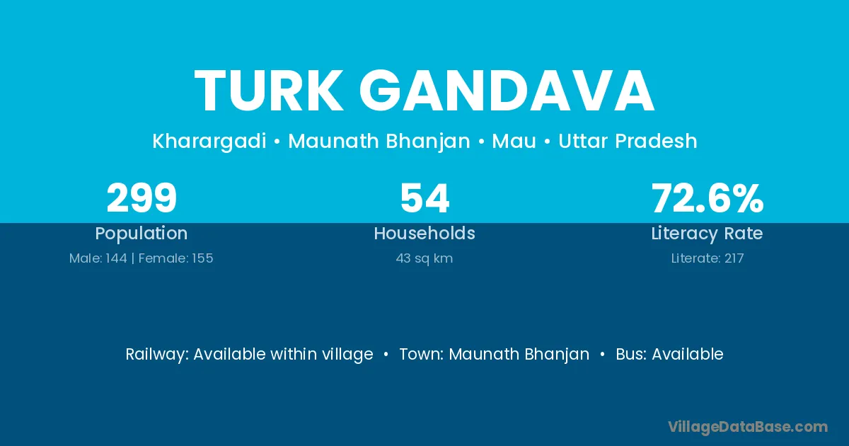 Maunath Bhanjan is the nearest town to Turk Gandava village for major economic activities