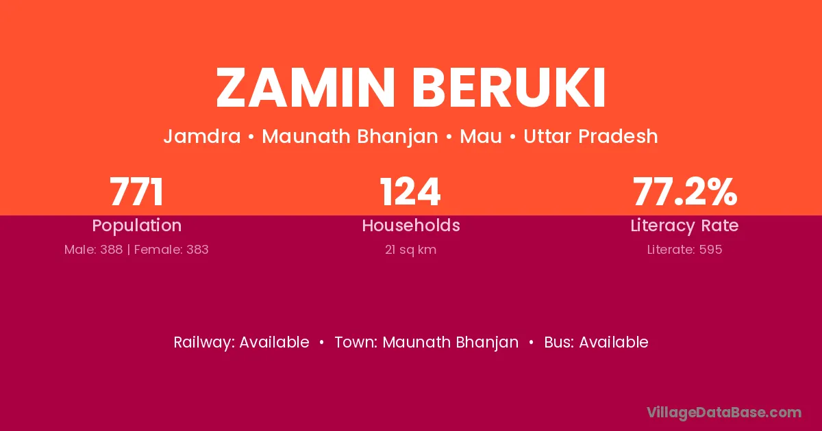 Maunath Bhanjan is the nearest town to Zamin Beruki village for major economic activities
