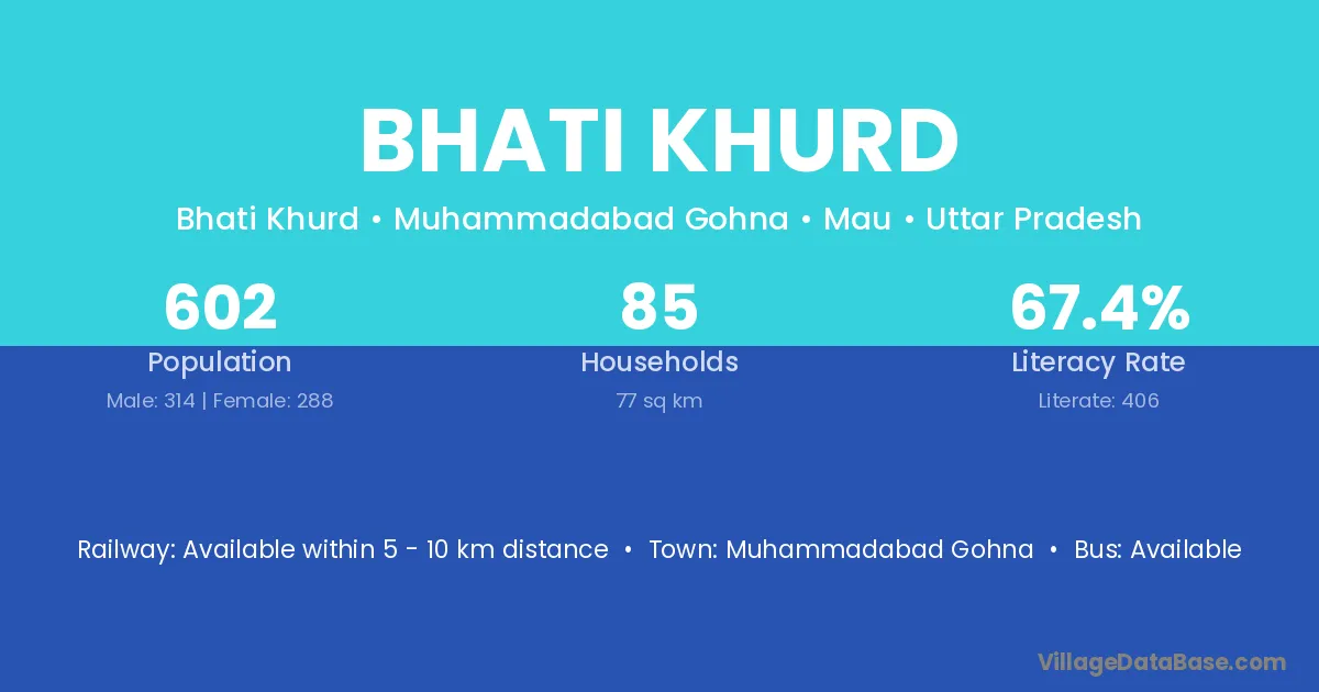 Muhammadabad Gohna is the nearest town to Bhati Khurd village for major economic activities