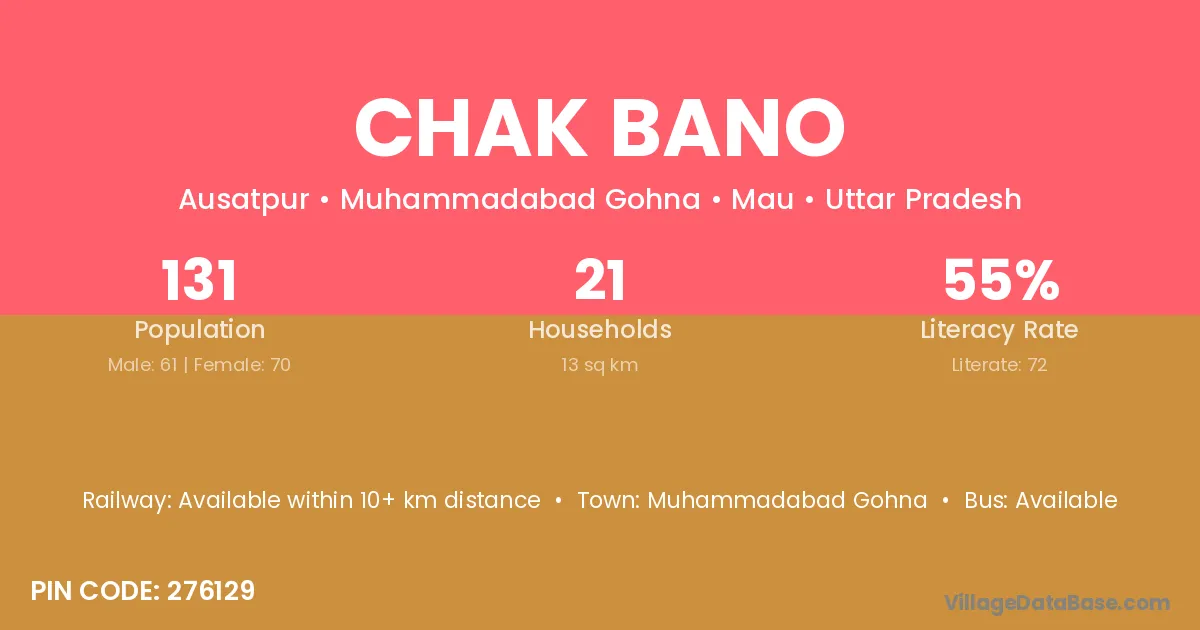 Muhammadabad Gohna is the nearest town to Chak Bano village for major economic activities