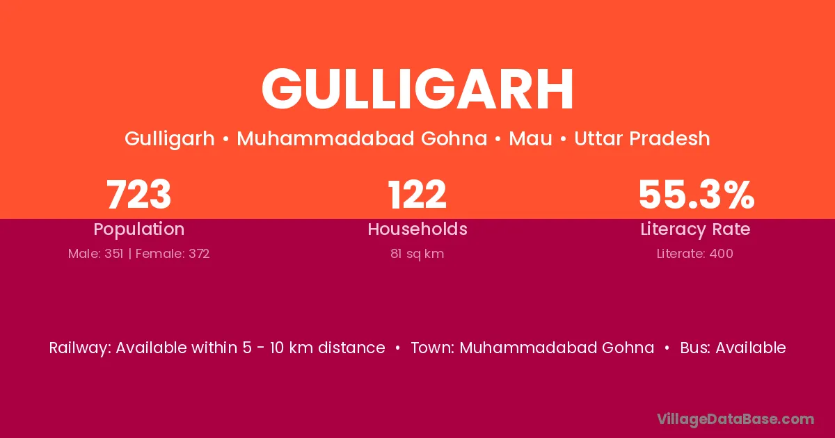 Muhammadabad Gohna is the nearest town to Gulligarh village for major economic activities