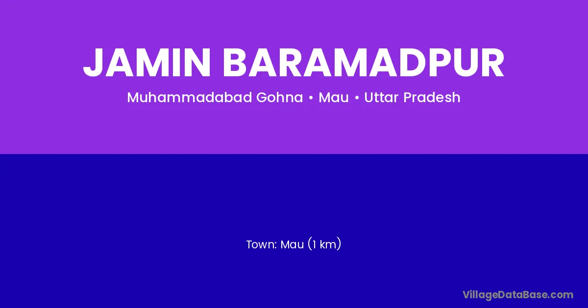 Mau (1 km) is the nearest town to Jamin Baramadpur village for major economic activities and is located approximately 1 km away.
