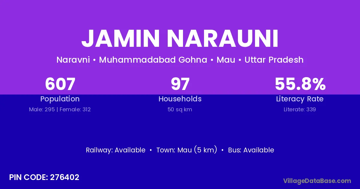 Mau (5 km) is the nearest town to Jamin Narauni village for major economic activities and is located approximately 5 km away.