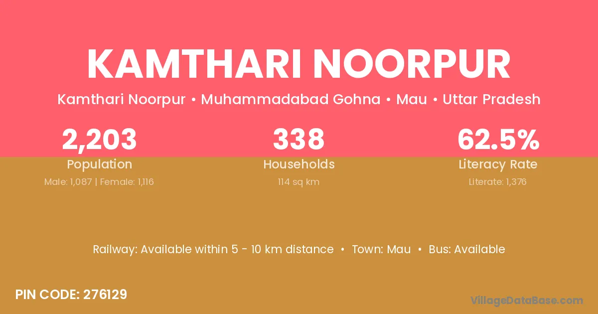 Kamthari Noorpur village has a total population of 2,203 people, of which 1,087 are males and 1,116 are females.
