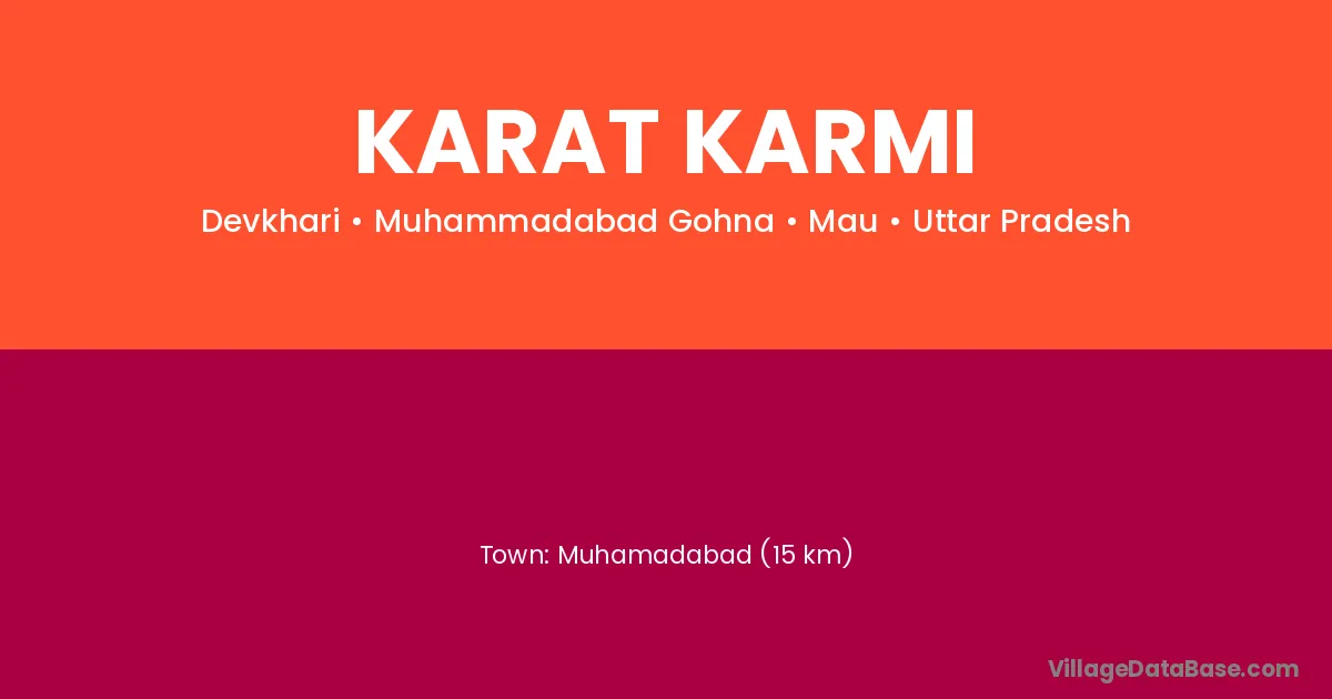 Muhamadabad (15 km) is the nearest town to Karat Karmi village for major economic activities and is located approximately 15 km away.