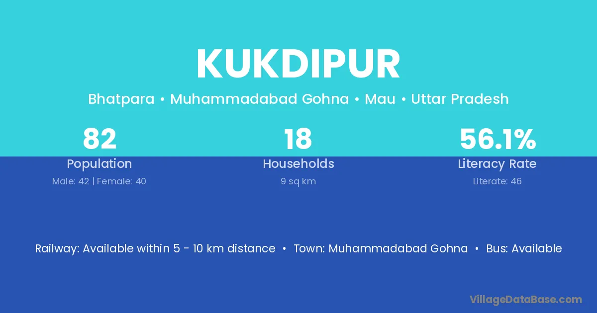 Kukdipur village has a total population of 82 people, of which 42 are males and 40 are females.