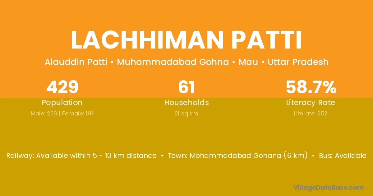 Mohammadabad Gohana (6 km) is the nearest town to Lachhiman Patti village for major economic activities and is located approximately 6 km away.