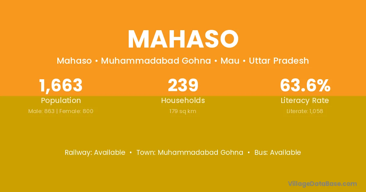 Muhammadabad Gohna is the nearest town to Mahaso village for major economic activities