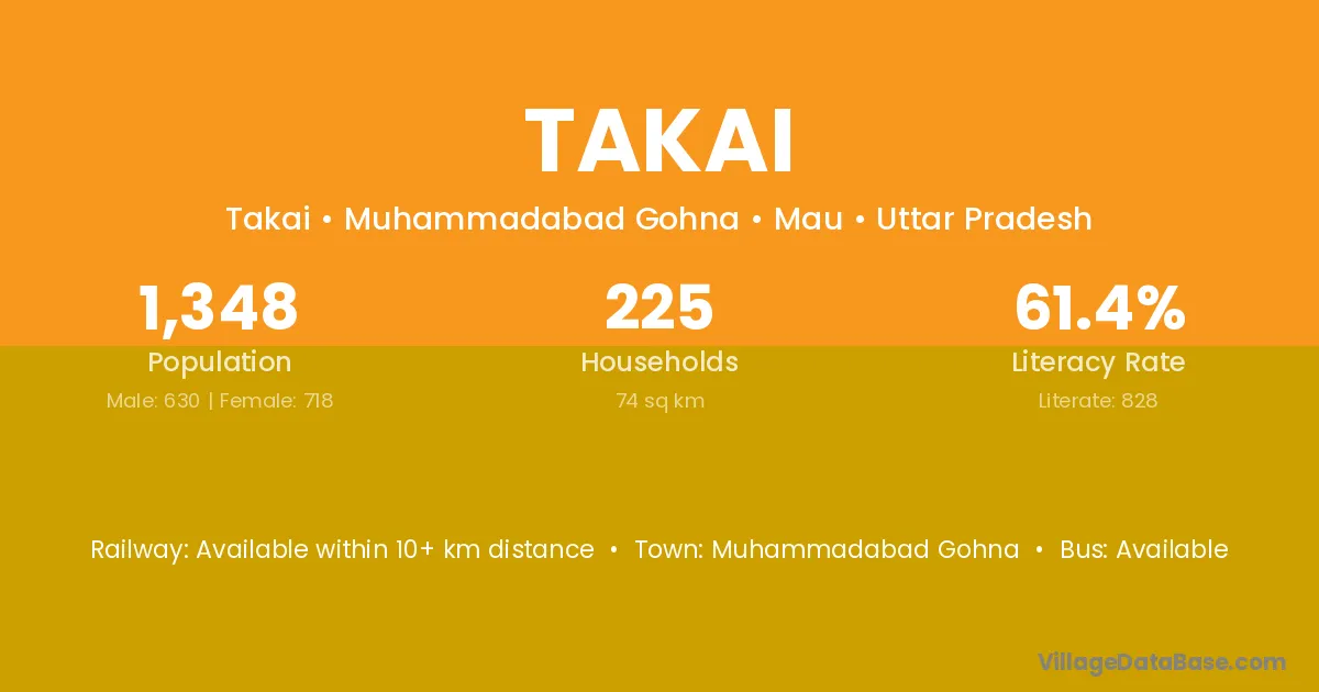 Muhammadabad Gohna is the nearest town to Takai village for major economic activities