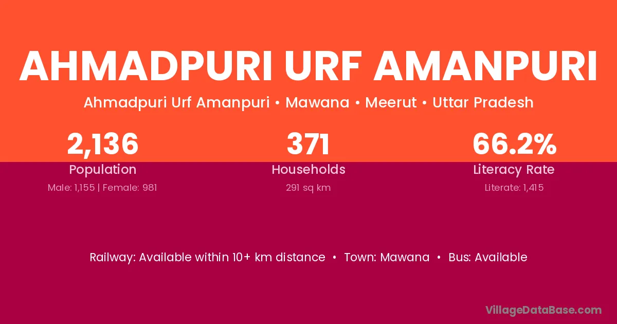 Mawana is the nearest town to Ahmadpuri Urf Amanpuri village for major economic activities