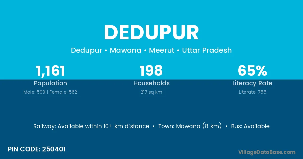 Mawana (8 km) is the nearest town to Dedupur village for major economic activities and is located approximately 8 km away.