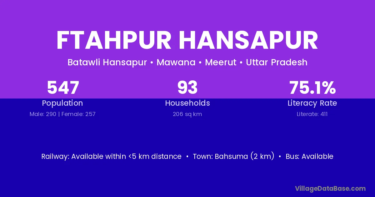 Bahsuma (2 km) is the nearest town to Ftahpur Hansapur village for major economic activities and is located approximately 2 km away.