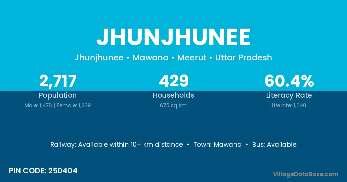 Mawana is the nearest town to Jhunjhunee village for major economic activities