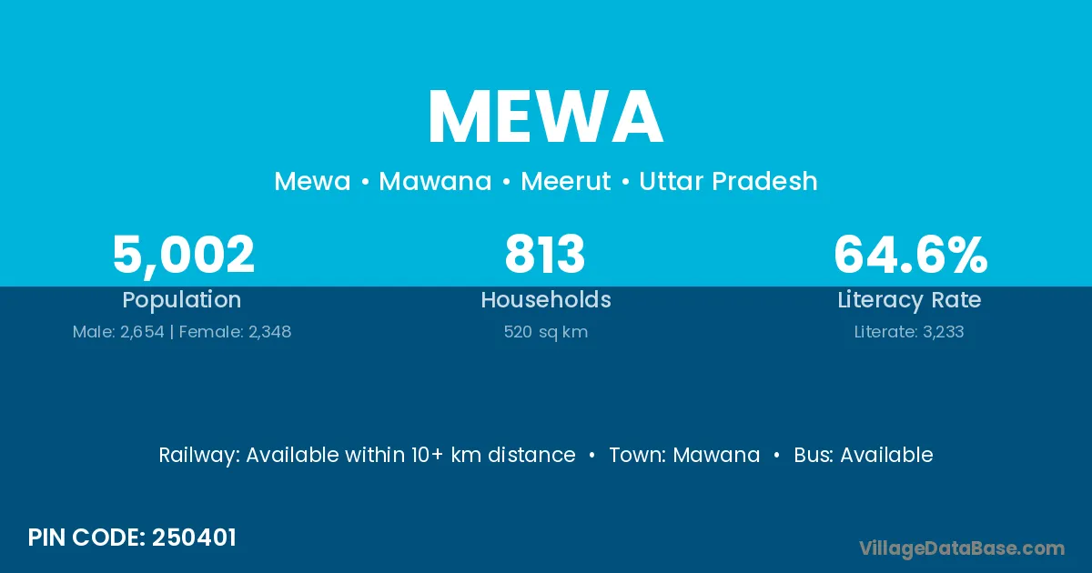 Mawana is the nearest town to Mewa village for major economic activities