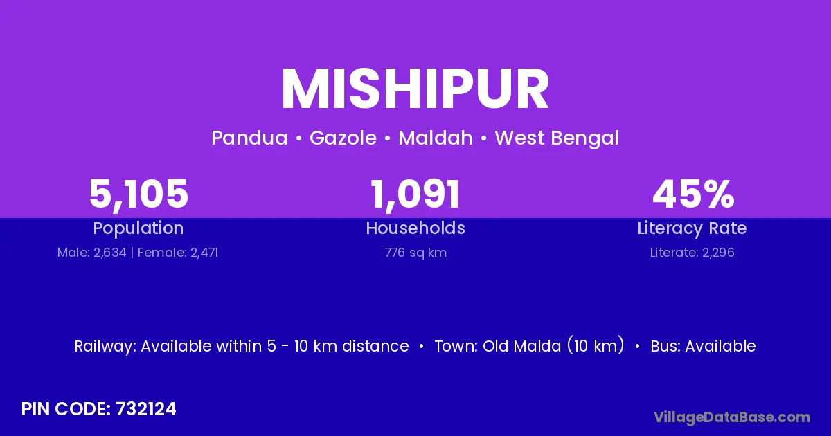 Garh Mukeswar (8 km) is the nearest town to Mishipur village for major economic activities and is located approximately 8 km away.