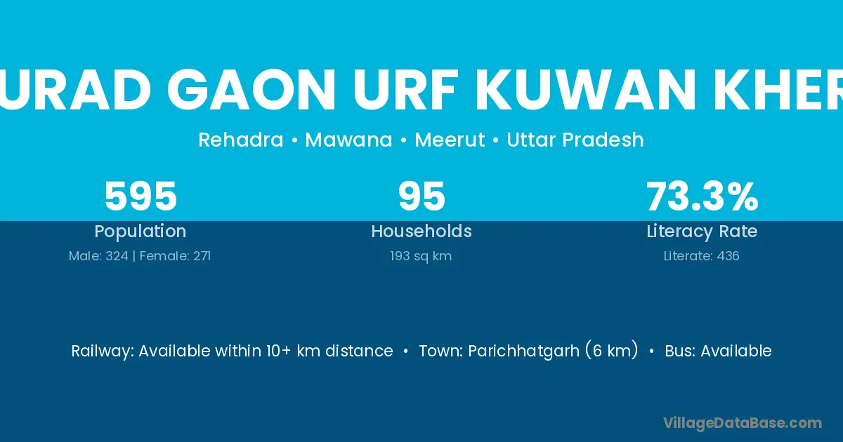 Murad Gaon Urf Kuwan Khera village has a total population of 595 people, of which 324 are males and 271 are females.