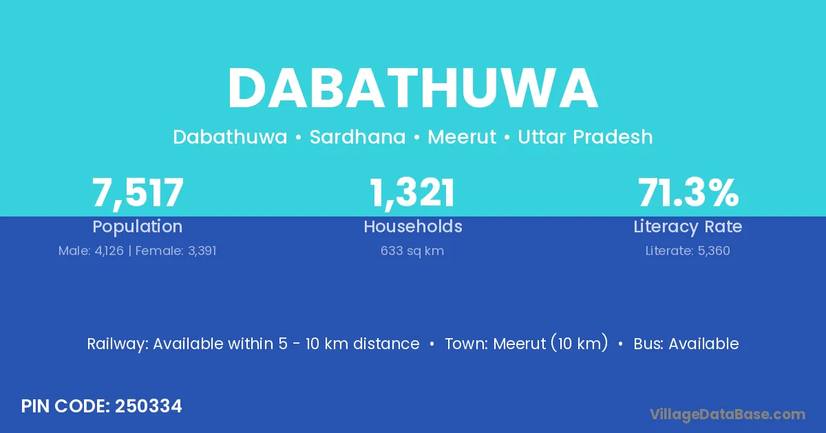 Meerut (10 km) is the nearest town to Dabathuwa village for major economic activities and is located approximately 10 km away.