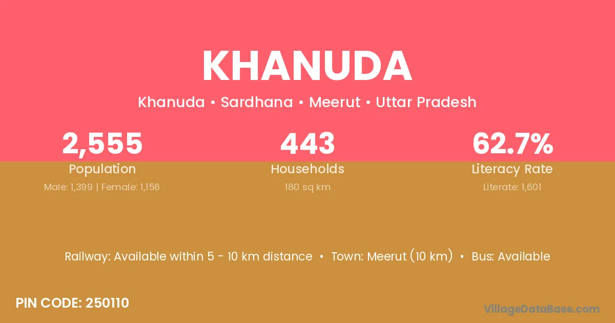 Meerut (10 km) is the nearest town to Khanuda village for major economic activities and is located approximately 10 km away.