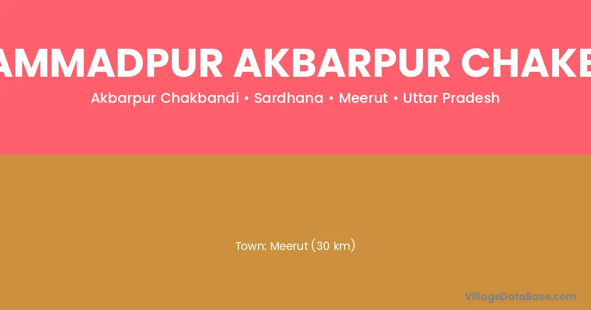 Meerut (30 km) is the nearest town to Mohammadpur Akbarpur Chakbandi village for major economic activities and is located approximately 30 km away.