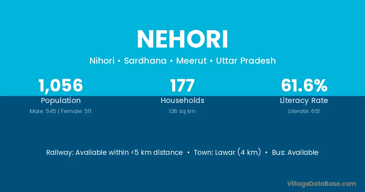 Lawar (4 km) is the nearest town to Nehori village for major economic activities and is located approximately 4 km away.