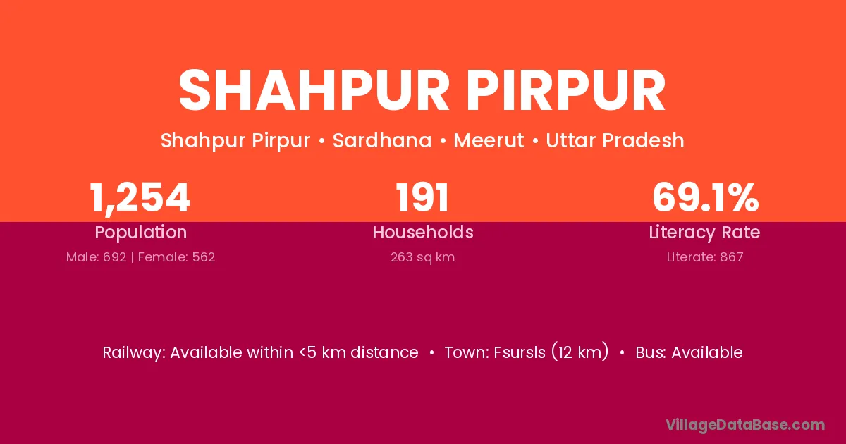 Shahpur Pirpur village has a total population of 1,254 people, of which 692 are males and 562 are females.