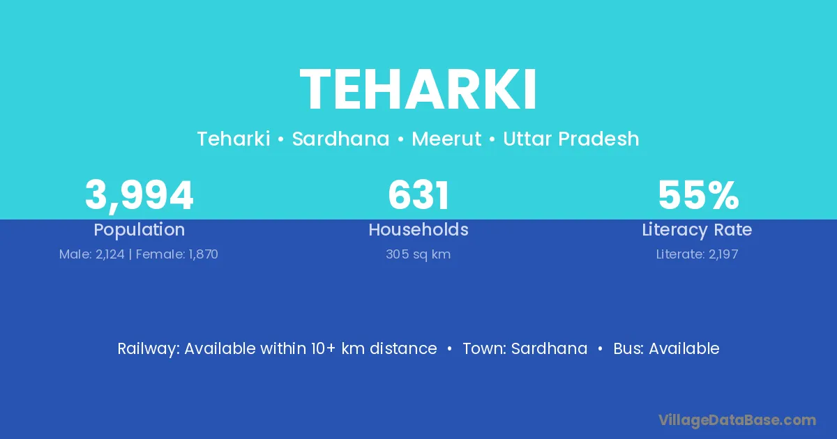 Sardhana is the nearest town to Teharki village for major economic activities