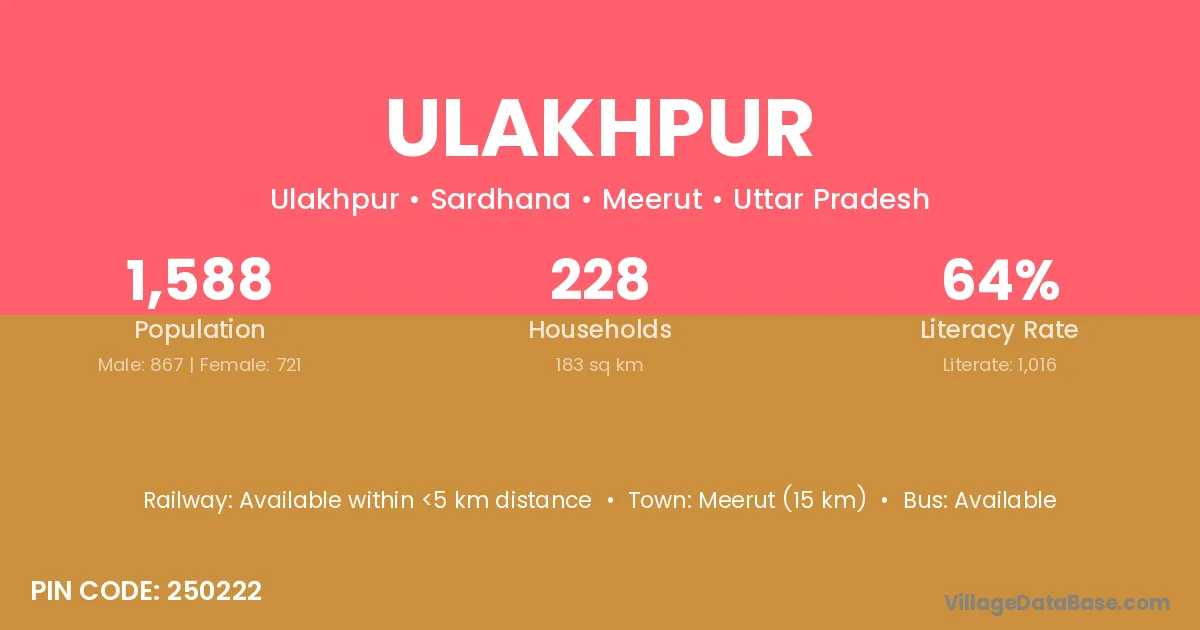 Meerut (15 km) is the nearest town to Ulakhpur village for major economic activities and is located approximately 15 km away.