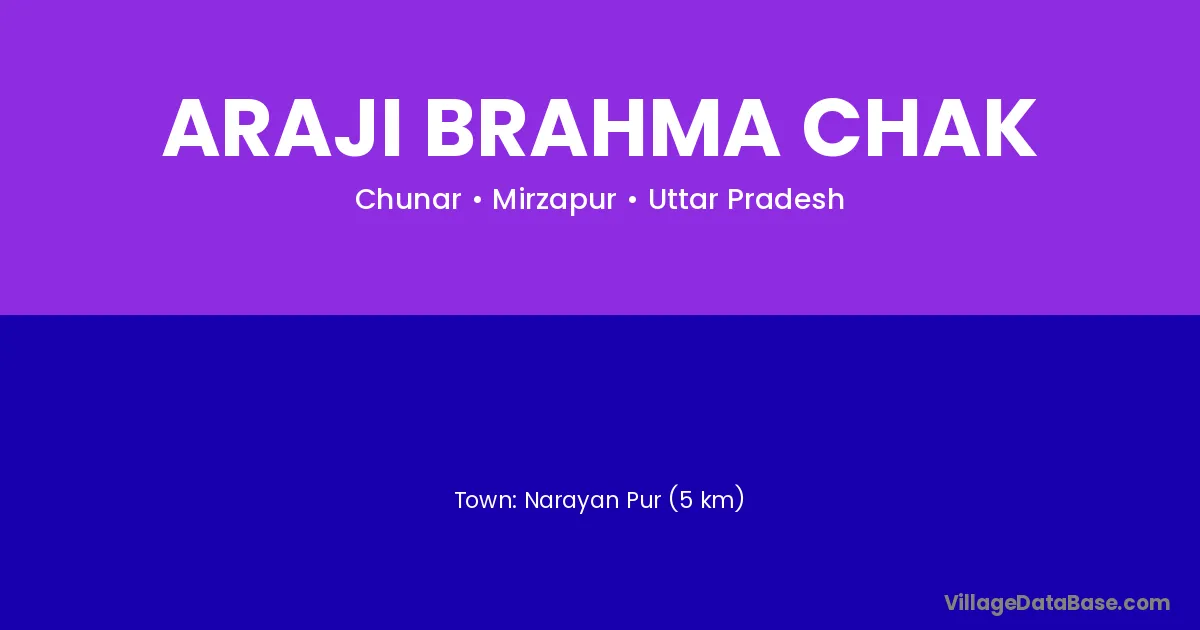 Narayan Pur (5 km) is the nearest town to Araji Brahma Chak village for major economic activities and is located approximately 5 km away.