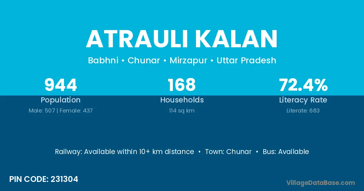 Chunar is the nearest town to Atrauli Kalan village for major economic activities