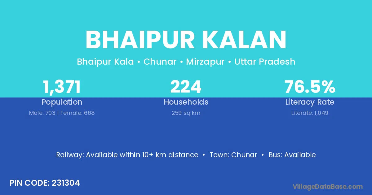 Chunar is the nearest town to Bhaipur Kalan village for major economic activities