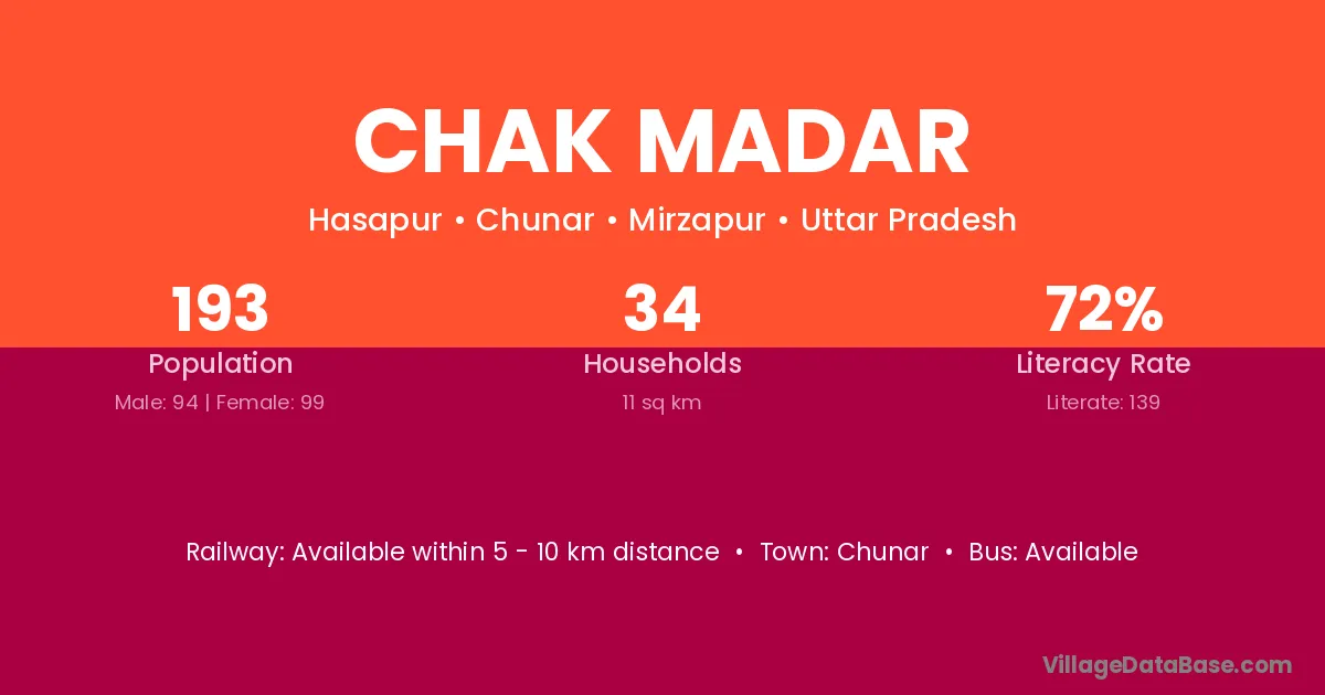 Chunar is the nearest town to Chak Madar village for major economic activities