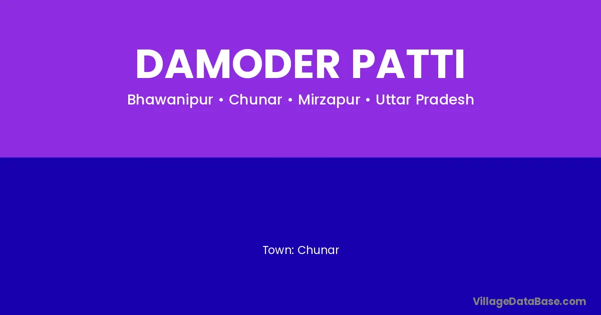 Chunar is the nearest town to Damoder Patti village for major economic activities
