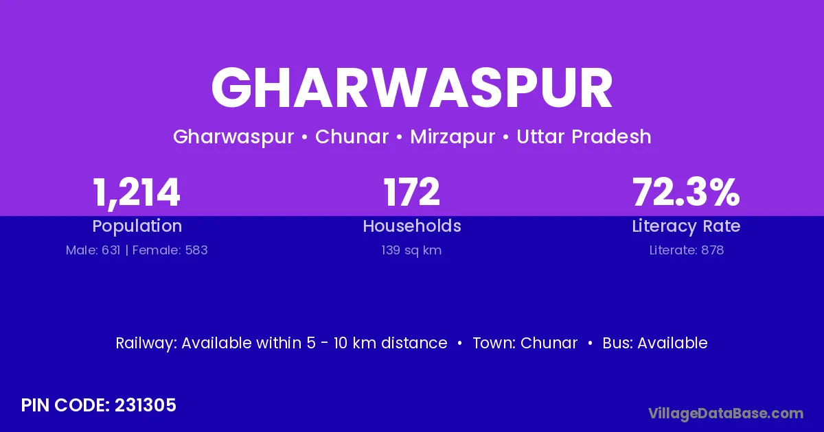 Gharwaspur village has a total population of 1,214 people, of which 631 are males and 583 are females.