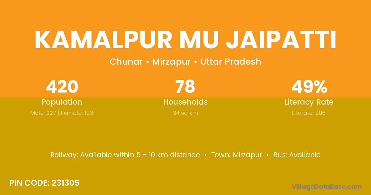 Kamalpur Mu Jaipatti village has a total population of 420 people, of which 227 are males and 193 are females.