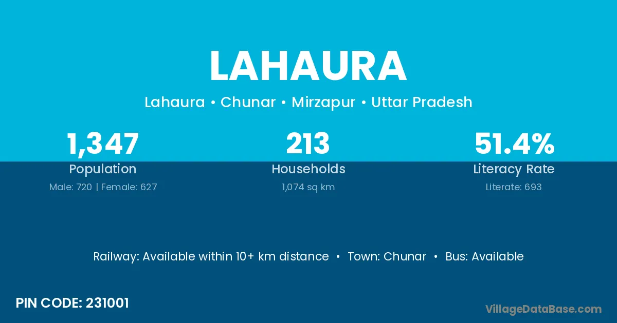 Chunar is the nearest town to Lahaura village for major economic activities