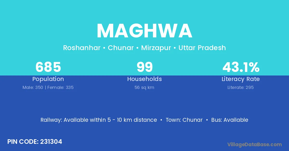 Maghwa village has a total population of 685 people, of which 350 are males and 335 are females.
