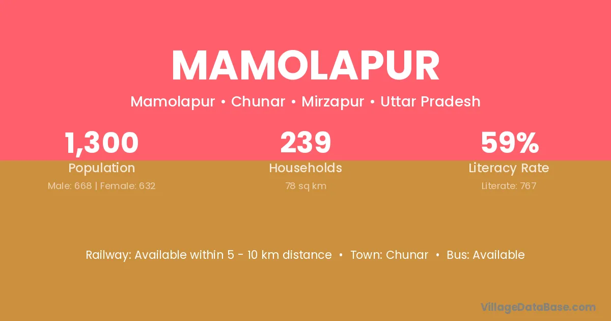 Chunar is the nearest town to Mamolapur village for major economic activities
