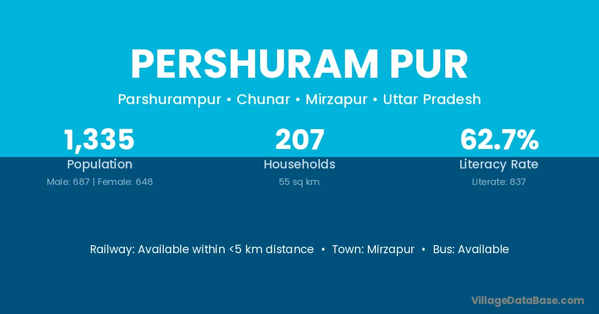 Mirzapur is the nearest town to Pershuram Pur village for major economic activities