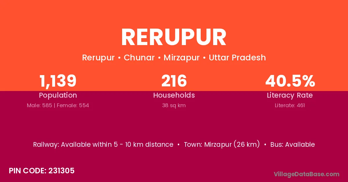 Mirzapur (26 km) is the nearest town to Rerupur village for major economic activities and is located approximately 26 km away.