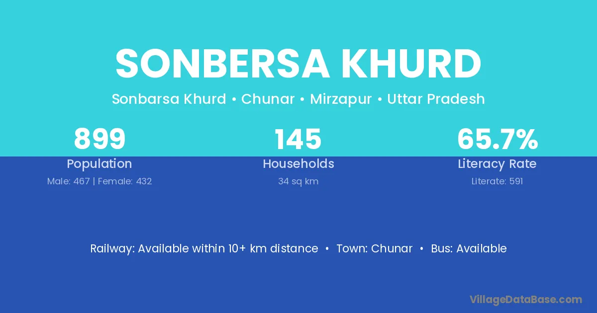 Sonbersa Khurd village has a total population of 899 people, of which 467 are males and 432 are females.