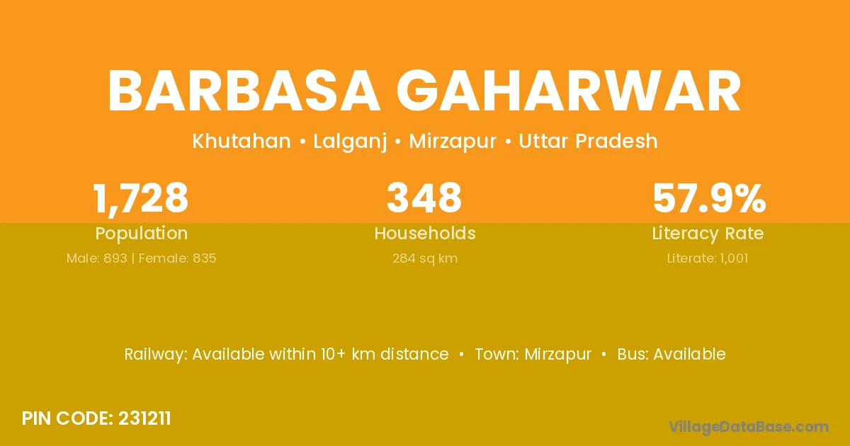 Mirzapur is the nearest town to Barbasa Gaharwar village for major economic activities