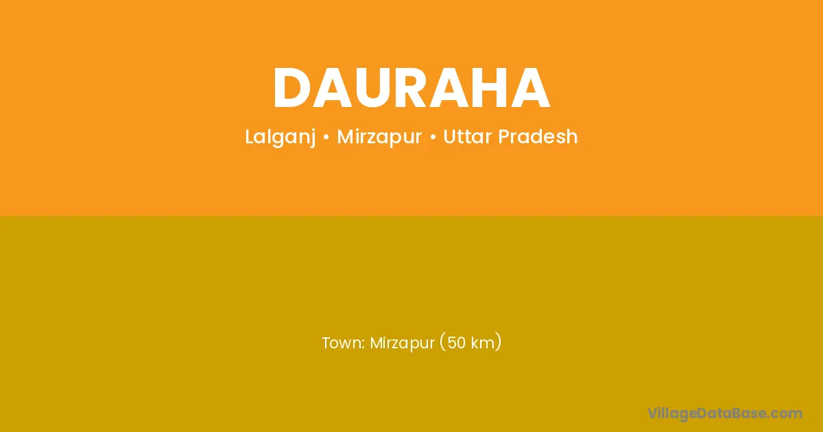 Mirzapur (50 km) is the nearest town to Dauraha village for major economic activities and is located approximately 50 km away.