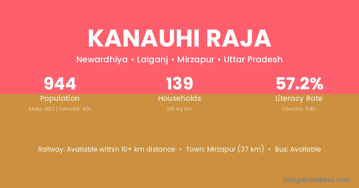 Mirzapur (37 km) is the nearest town to Kanauhi Raja village for major economic activities and is located approximately 37 km away.